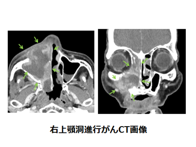 上顎洞内にがんが限局している場合の診断はなかなか困難で、症状を自覚して来院する時にはすでにがんが進行している場合が多いようです。