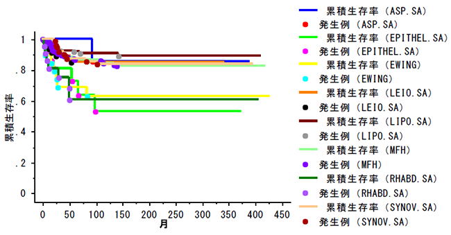 代表的悪性軟部腫瘍 疾患別5年累積生存率