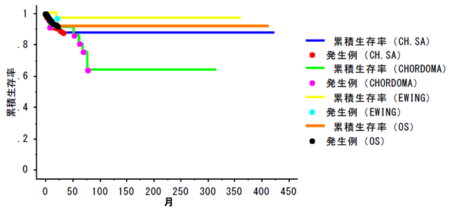 代表的悪性骨腫瘍 疾患別5年累積生存率