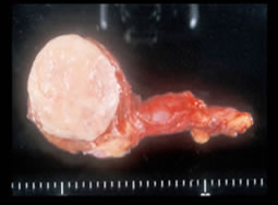精巣がんでは、前立腺がんのように手術前に組織検査をして診断を確定することは転移を生じる恐れがあるため禁忌です。