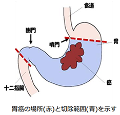 - 胃亜全摘術:胃上部に存在する早期胃がんを対象としています。