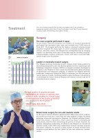 8The most surgeries performed in JapanAt the Cancer Institute Hospital, the number of surgical procedures performed has increased every year and reached over 7,000 cases in scal 2011. The Hospital performs the highest volume of surgeries among Japanese hospitals for many types of cancer including stomach, breast, cervical, and colon cancer. The Hospital has accomplished this by bringing together an operating room team of oncology experts including surgeons, anesthesiologists, medical technicians, nurses, and others to provide high-quality surgical care for patients. TreatmentSurgeryTakeshi Sano, M.D., Ph.D.Department Director of Gastroenterological Surgery A high number of surgeries provides opportunities for doctors to advance their technical skills, resulting in a broad range of enhancements to the quality of medical care provided by the Hospital.Leaders in minimally-invasive surgeryThe Hospital promotes minimally-invasive surgery, which helps patients by decreasing postoperative pain and allowing speedy recovery. Laparoscopy and Endoscopy Cooperative Surgery (LECS) is a surgical procedure developed by surgeons at the Hospital to resect tumors by simultaneously taking advantage of laparoscopic and endoscopic surgeries. In addition, the Hospital performs endoscopic submucosal dissection (ESD), a technique for the resection of tumors using an IT knife. Combining skilled surgical technique with advances in technology, the Cancer Institute Hospital will continue to lead in the use of minimally-invasive surgery. Breast cancer surgery for cure and cosmetic results At the Cancer Institute Hospital, approximately 1,000 breast cancer surgeries are carried out every year—more than any other hospital in Japan. By taking advantage of accurate preoperative diagnosis, the Hospital performs breast-conserving surgery, a procedure where cancerous tissue is precisely and meticulously removed while minimizing the portion of breast removed. For patients undergoing mastectomy, all efforts at the Hospital are focused on patients? quality of life. With close collaboration between oncology surgeons and plastic surgeons, we perform a large number of breast reconstruction surgeries to give patients the best chance for cure and satisfactory cosmetic results.The Cancer Institute Hospital offers the latest and highest level of care provided by experienced specialists using state-of-the-art technology in each eld of cancer treatment including surgery, chemotherapy, and radiation therapy.‘?7,0006,0005,0004,0003,0002,0001,0000Annualnumber ofsurgeries Number of Surgeries20062007200820092010201120125,5356,0296,1606,6356,8957,1137,4048,000