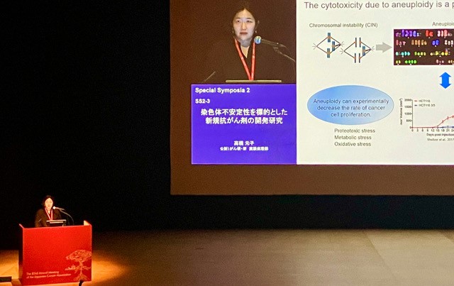 この度のWSCR賞を受賞し、大変光栄です。発表演題「染色体不安定性を標的とした新規抗がん剤の開発研究」は、実験病理部の加藤詩子さん、趙民知さん、鎌倉奈々さん、河北暢佳さんとともに、広田亨部長のご指導のもと、日本医療研究開発機構・次世代がん医療加速化研究事業(P-PROMOTE)の支援を受け進めてきた研究プロジェクトに関するものです。抗がん剤開発の道のりは長く険しいですが、本賞を励みに引き続きチームで研究に邁進してまいります。