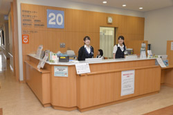 从医院正门进入,总服务台就在右边。已与国际中心的工作人员约好的人士,或有问题需要咨询的人士,请告知工作人员。
