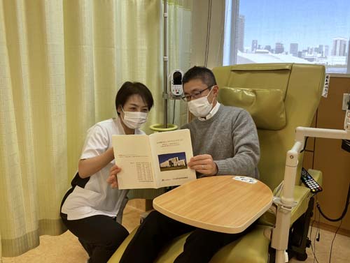 薬剤師が、外来で治療が開始される患者さんに対して、抗がん薬のスケジュールや服用方法、副作用の予防や対処法について丁寧に説明し、治療の継続を支えます。医師と連携しながら最適な治療を支援します。