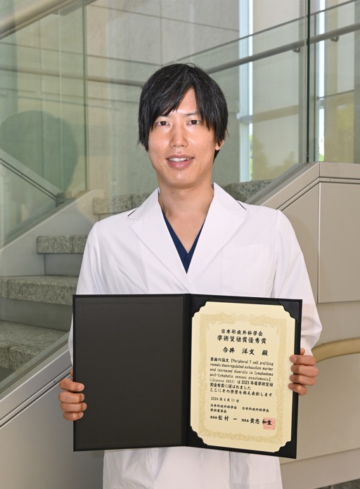 今井洋文医師 研究課題名:『Peripheral T cell profiling reveals downregulated exhaustion marker and increased diversity in lymphedema post-lymphatic venous anastomosis』