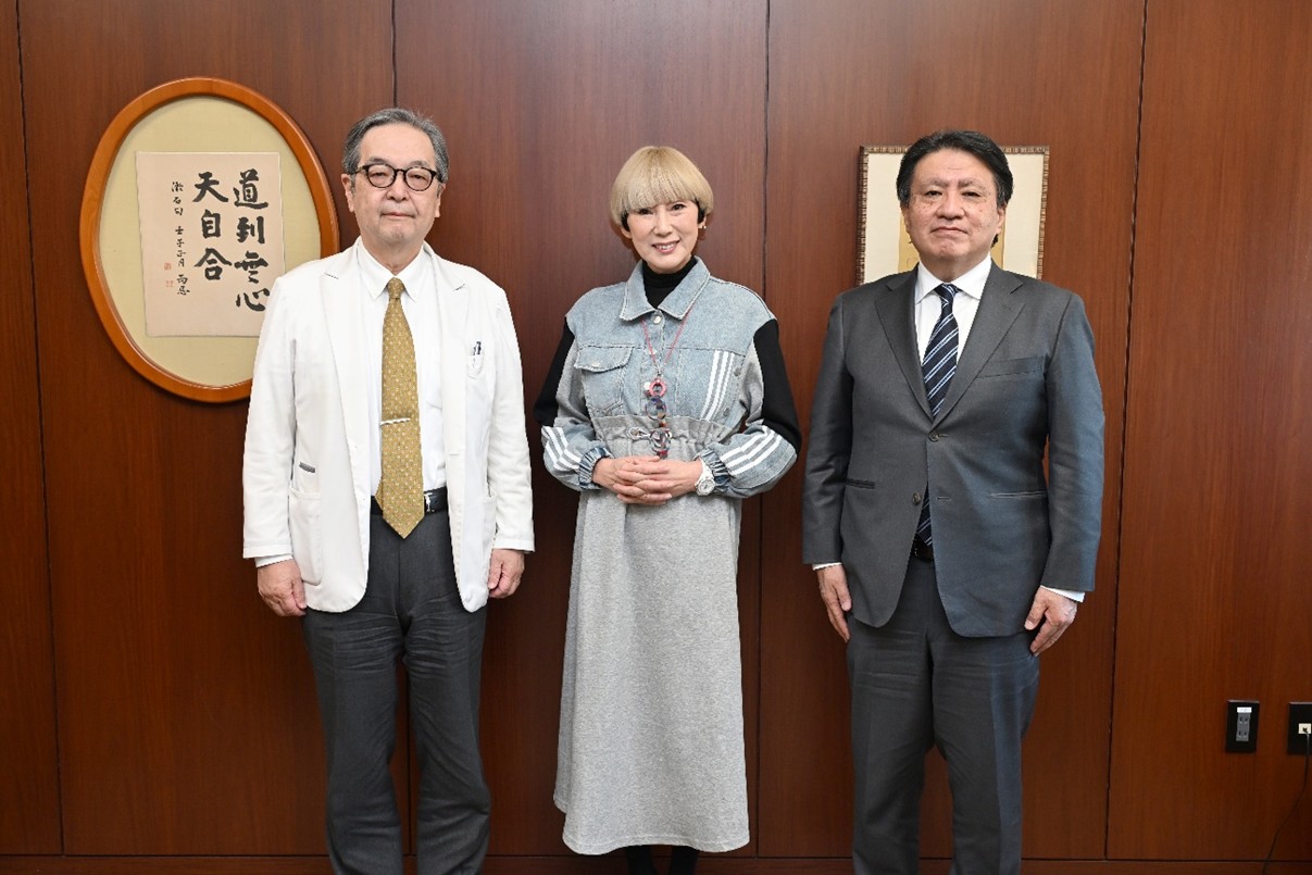 2月に行われた寄付贈呈式には当会を代表して研究所所長 野田哲生先生と佐野武先生が出席いたしました。秋野さんより、「がん研究・医療に役立てて欲しい」との熱い励ましのお言葉をいただいたことに対し、両先生からはがん克服への不退転の決意と感謝の意をお伝えしました。