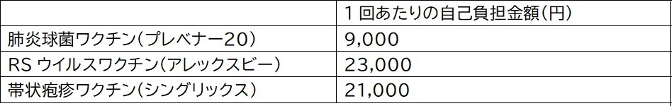 当院で接種可能なワクチンについては、2025年4月現在の接種費用は以下の通りです。当院で対応していないワクチンについては、医療機関ごとに費用の設定が少しずつ異なりますので、接種するご予定の医療機関にお問い合わせください。