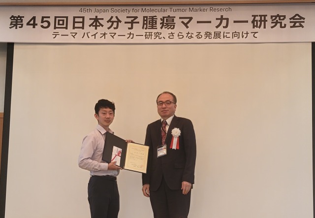 このたび、当院 CPMセンター 分析生化学研究部研究生 杉本 一真が「第45回日本分子腫瘍マーカー研究会」で奨励賞を受賞しました。