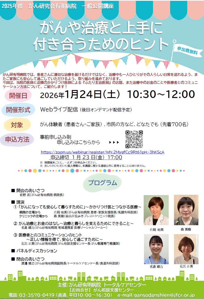 2026年1月24日(土)に、がん研有明病院 一般公開講座をウェブ開催いたしました。
